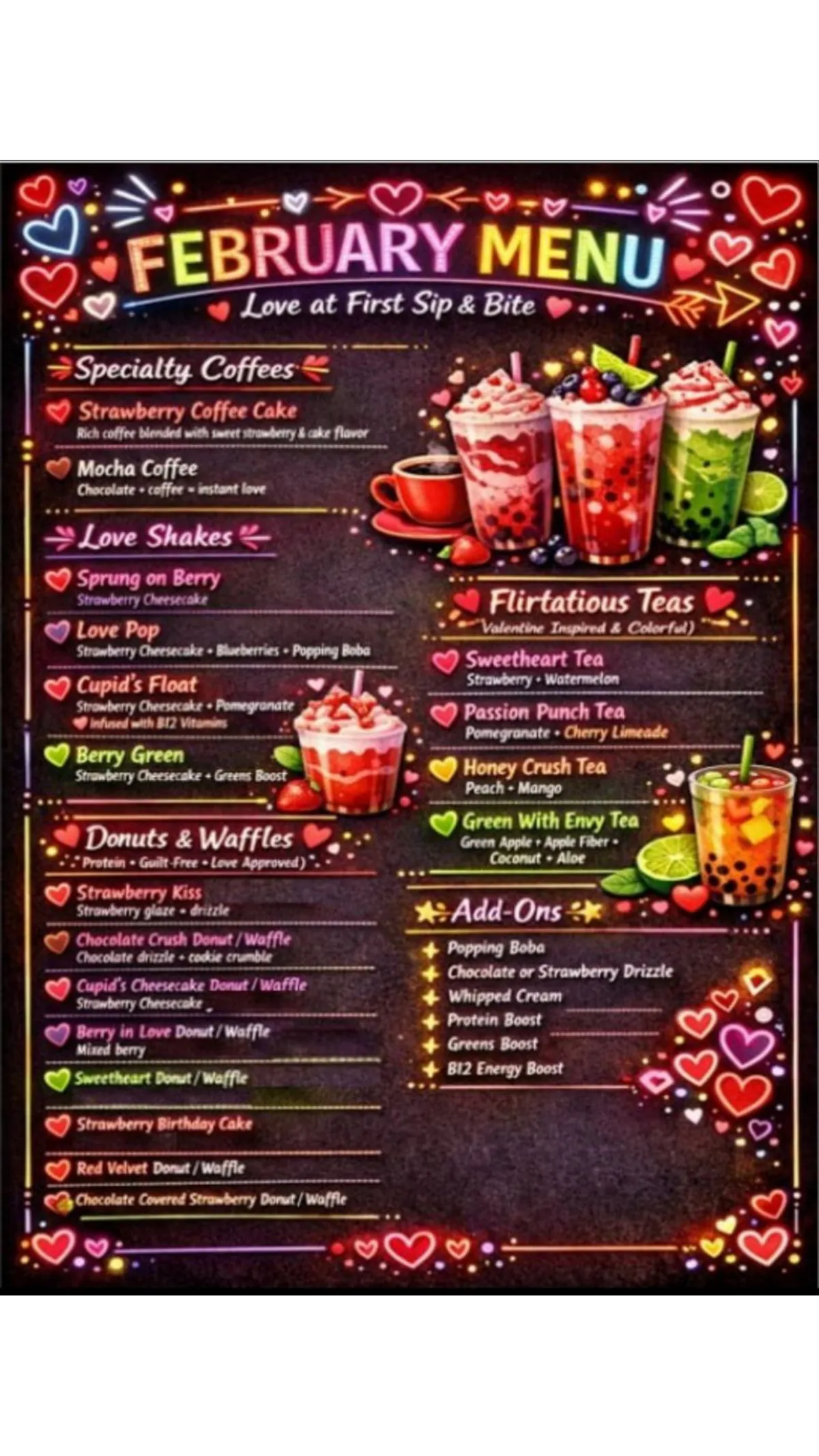 All of our items are made with premium ingredients to give you the best way to start or end your day! Perfect for busy mornings or a mid-day pick-me-up, our shakes are packed with a minimum of 24g of protein and serve as a full meal replacement—complete with 21 essential vitamins and minerals to fuel your body and mind.